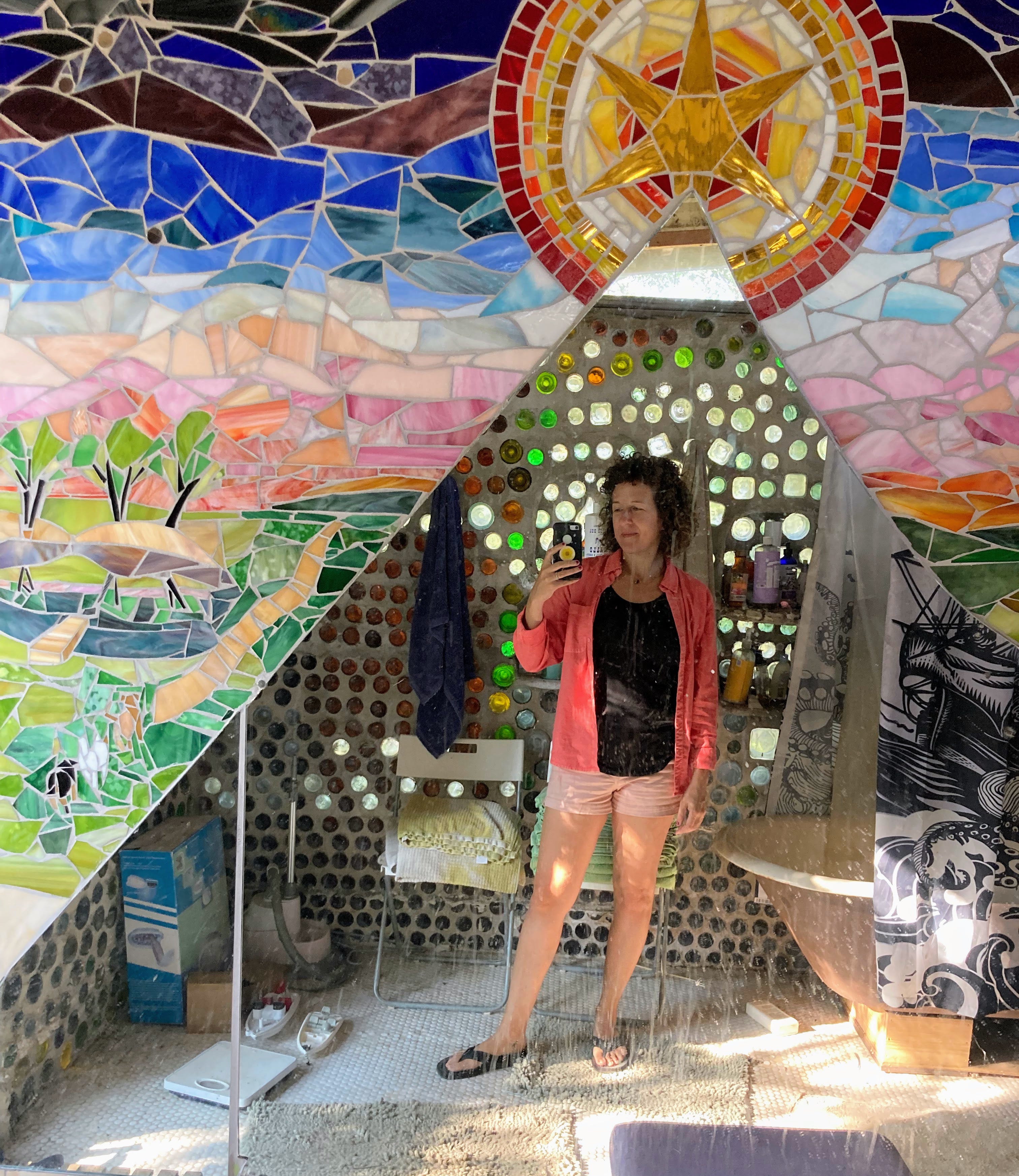 And don’t forget to stop by the bathroom before dark so you can see the most amazing mosaic, which was one of the pieces left behind by an artist-in-residence.